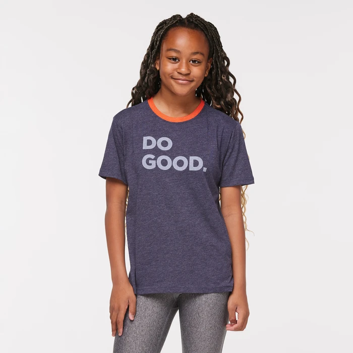 Designed with that super soft, worn-in feel, the Do Good Kids’ tee features cover stitching and a screenprinted label for comfortable wear. Perfect for hikes, travel, and play. This style is unisex.