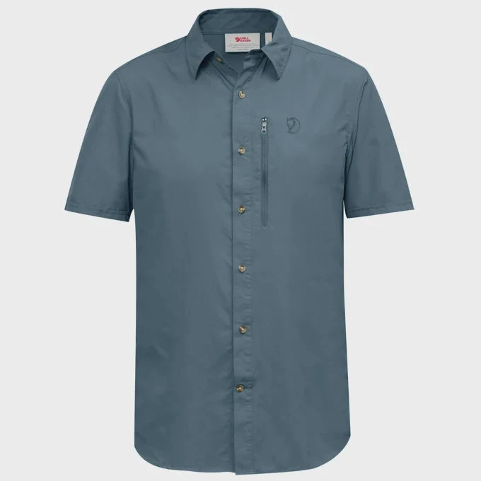 Lightweight, comfortable short-sleeved shirt for trekking and outdoor life in the summer. Made from a soft, functional fabric that wicks away moisture and feels cool against the skin. A convenient garment that takes little space in a pack – practical when space is limited. Well-fitting cut, buttons at the front and a vertical chest pocket with zipper and mesh lining. Ventilation opening at the yoke to release excess heat.Â