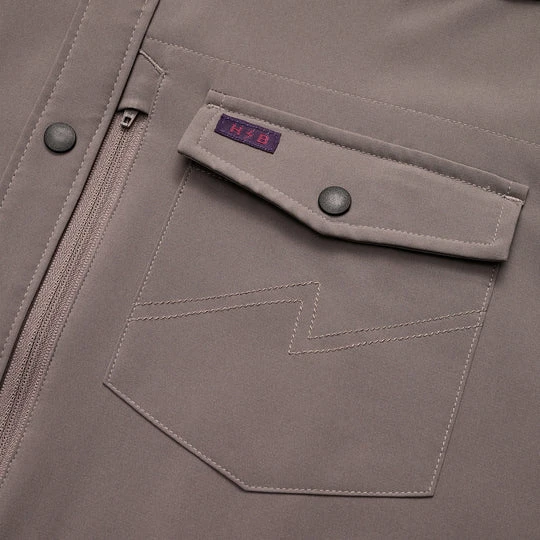 - Flush zipper pocket at left chest