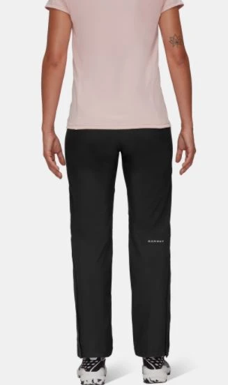 Rain pants for hiking: the Albula HS Pants Women. Sustainably dyed using a dope-dye method. Comfortable thanks to a pleasant, lightweight and stretchable material made of polyester. The Albula HS Pants Women can be packed up and stowed in the side pocket. Practical.