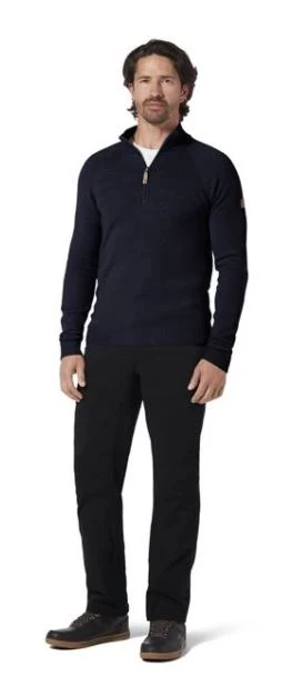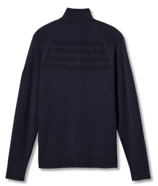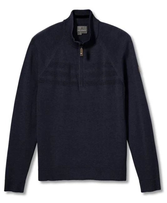 Versatile merino blend zip-neck sweater with enhanced breathability.