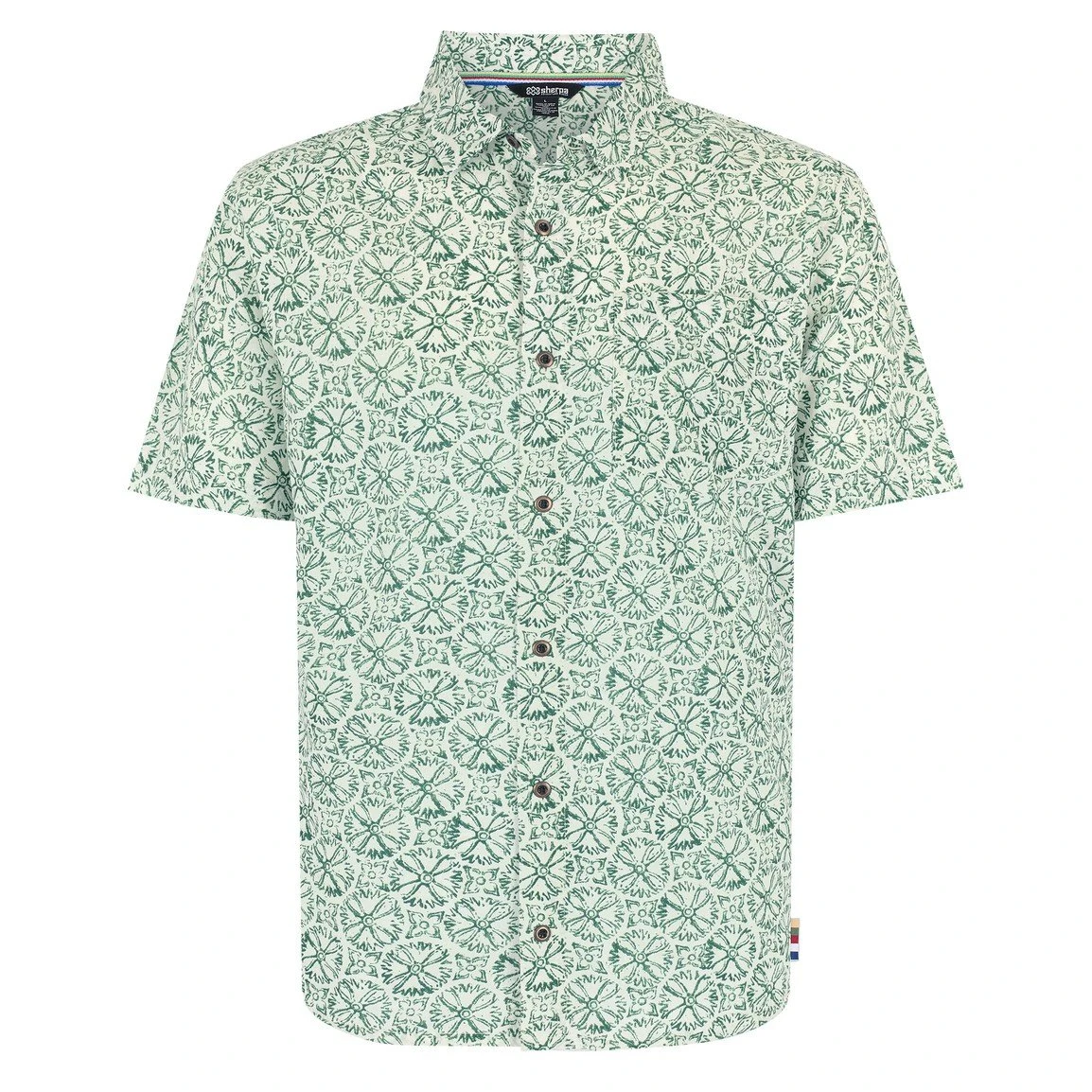 For both travel wear and daily adventures, the Mancari Short Sleeve Shirt is a classic fit shirt to complete any outfit. Made from a woven blend of recycled cotton and recycled polyester, the fabric delivers softness and breathability, helping to regulate temperature and manage moisture, for lasting comfort. Forward set shoulder seams and a pleated back yoke promote freedom of movement. Featuring a Nepali inspired geometric pattern, faux wood buttons, and a single chest pocket, the shirt provides a relaxed look, ideal for pairing with shorts or pants for smart-casual dressing. Named after a style of traditional Nepali folk song, soak up the culture and heritage of new destinations, explore the trail less travelled, and revel in adventures both great and small, in the Mancari Short Sleeve Shirt.