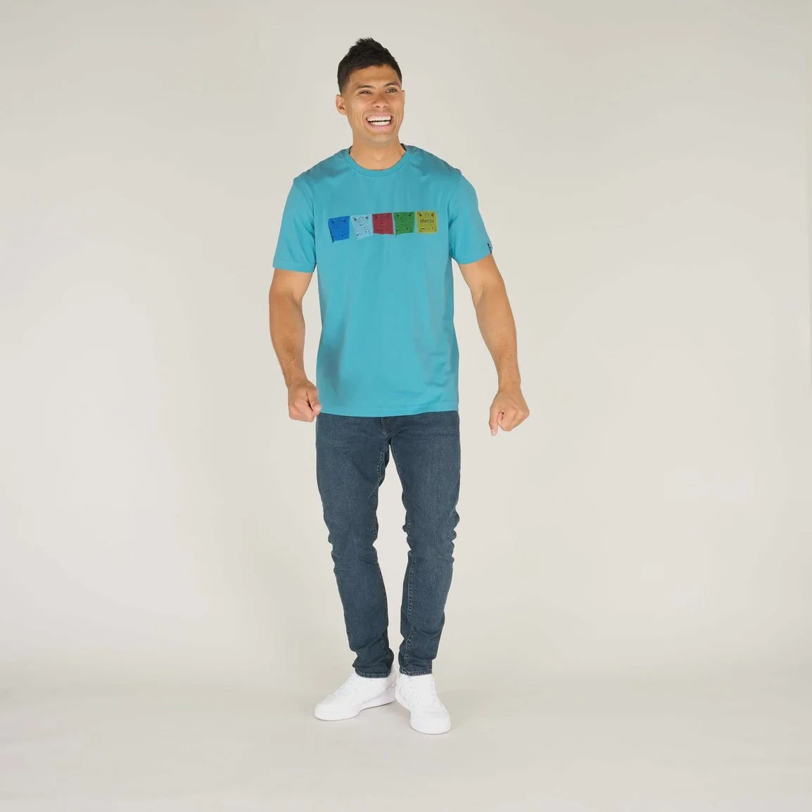 Tarcho is the name given to Tibetan prayer flags – colourful rectangular cloth, often found strung along mountain ridges and peaks high in the Himalayas. The vibrant prayer flags are depicted on the chest of this soft and durable addition to your summer wardrobe. We’ve also woven prayer flags into the classic crew neck of the tee to prevent it from stretching out of shape. A real dedication to the Tarcho.