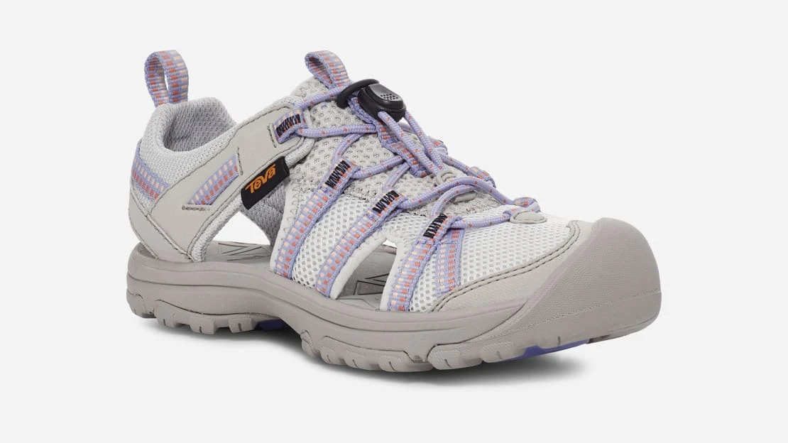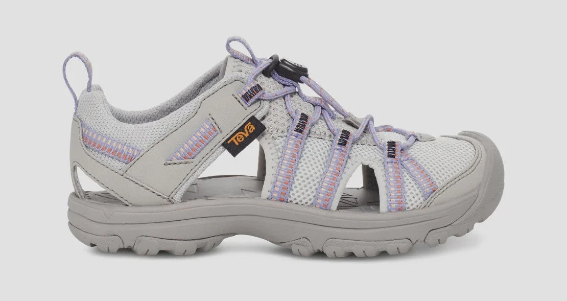 This rugged close-toe sandal protects little feet from the rigors of wet-dry adventure and comes on and off super fast thanks to an easy bungee-cord lacing system.Â